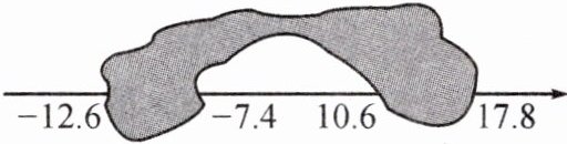12.解:因为从−12.6到−7.4之间的整数有:−12,−11,−10,−9,−8共5个;从10.6到17.8之间的整数有:11,12,13,14,15,16,17共7个,所以被墨迹盖住的所有整数有12个.