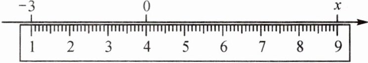 10. 如图,将一刻度尺放在数轴上(数轴的单位长度是 $ 1\ cm $),刻度尺上“$ 1\ cm $”和“$ 9\ cm $”分别对应数轴上的 $ -3 $ 和 $ x $,那么 $ x $ 的值为