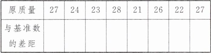 10. (教材P49例3变式)(淄博临淄区期中)有一批水果,包装质量为每筐25千克,现抽取8筐样品进行检测,结果称重如下(单位:千克):27,24,23,28,21,26,22,27,为了求得8筐样品的总质量,我们可以选取一个恰当的基准数进行简化运算。