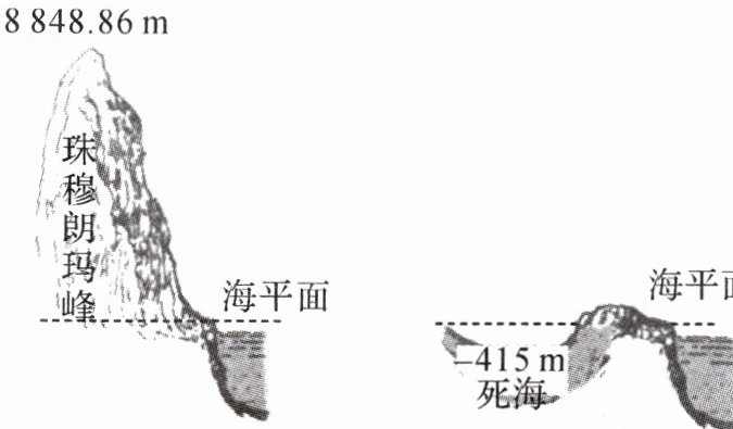 【跟踪训练 2】 如图,陆上最高处是珠穆朗玛峰的峰顶,最低处位于亚洲西部名为死海的湖,则两处高度相差