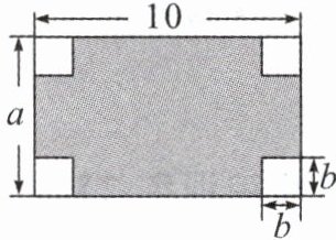 $5. $如图,把长为$10,$宽为$a$的长方形的四个角挖去边长为$b$的四个小正方形,则图中阴影部分的面积为