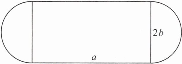 9.(淄博桓台县期末)如图,一个花坛由两个半圆和一个长方形组成,已知长方形的长为 $a$ 米,宽为 $2b$ 米。