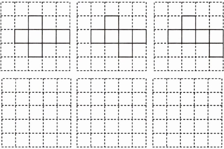 4.正方体是由六个平面图形围成的立体图形,设想沿着正方体的一些棱将它剪开,就可以把正方体剪成一个平面图形,但同一个正方体,按不同的方式展开所得的平面展开图是不一样的。如图所示,请至少再画出三种不同的平面展开图。