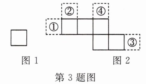 3.图1和图2中所有的正方形都相同,将图1的正方形放在图2中的①②③④某一位置,所组成的图形不能围成正方体的位置是(