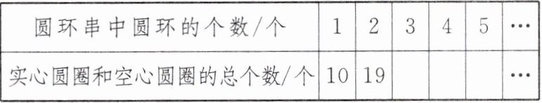 (2)设圆环串由 x 个圆环组成,请你直接写出组成圆环串所需实心圆圈和空心圆圈的总个数: