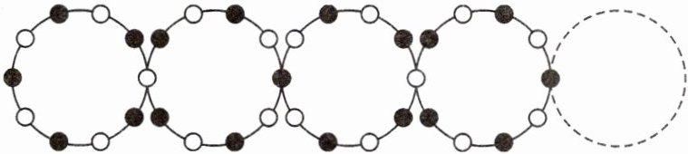 16. (烟台莱州市期末)如图,用 5 个实心圆圈,5 个空心圆圈相间组成一个圆环,然后把这样的圆环从左到右按下图所示方式排列.