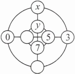 17. 【数学文化】幻方是中国古代传统游戏,多见于官府、学堂.如图,有一个类似于幻方的“幻圆”,将-2,-4,-6,0,3,5,7,9 分别填入图中的圆圈内,使横、竖,以及内、外两圈上的 4 个数字之和都相等.现已完成了部分填数,则图中$x+y$的值为