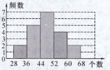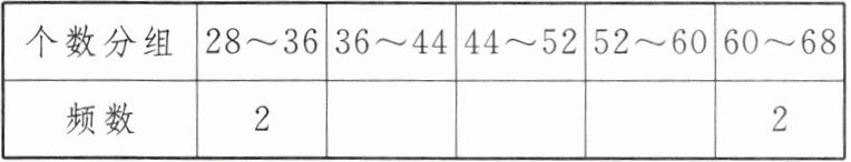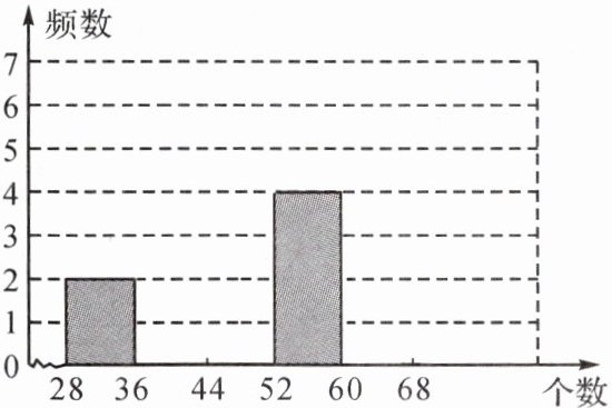 若对这20个数据按组距为8进行分组(每组含前一个边界值,不含后一个边界值),请补全下表及频数直方图。