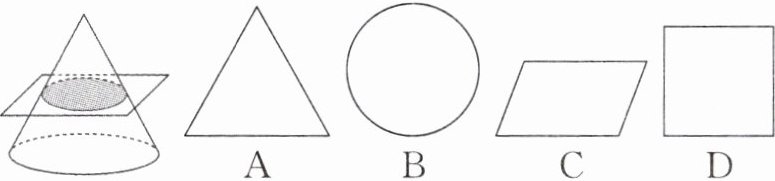 4.(贵阳中考)如图,用一个平行于圆锥底面的平面截圆锥,截面的形状是(