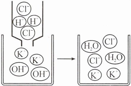 7. (关注宏观辨识与微观探析)(2022·贵港)如图是氢氧化钾溶液与稀盐酸反应的微观示意图。下列有关该反应的说法,错误的是 (
