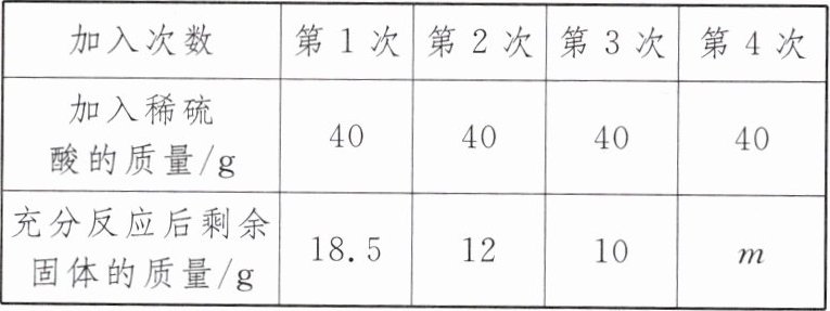(3)由表格中数据可知,40g稀硫酸反应掉锌的质量为25g−18.5g=6.5g