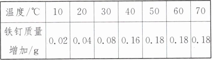 (2)50℃以后,3天内试管中的氧气耗尽,铁钉的腐蚀停止 用容积较大的容器代替装置中的试管,分别在50℃、60℃、70℃下重复上述实验
