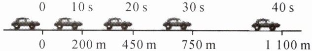 10. 如图记录了汽车在平直的公路上行驶时,在相同时间间隔内通过的路程。由图可知,汽车在各段时间内速度是