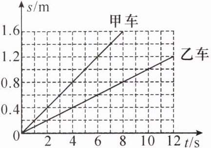 9. 甲、乙两辆玩具小车从同一起点一起向东运动的 $ s - t $ 图像如图,从图像中获得的信息正确的是(