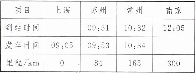 11. 从上海到南京的某次动车组运行时刻表如表所示。