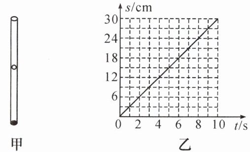 ;根据测量数据画出的路程—时间图像如图乙所示,则气泡上升的速度为3