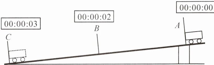 测量相关数据。(4)设小车在 AB 段、BC 段和 AC 段的平均速度分别为 $ v_{AB} $、$ v_{BC} $ 和 $ v_{AC} $,则 $ v_{AC} = $