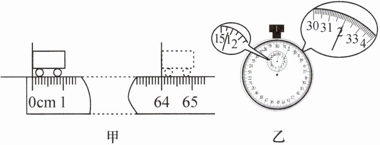 3. 在测量平均速度的实验中,某同学用刻度尺测量小车通过的路程(如图甲所示),用停表测量小车通过该段路程所用时间(如图乙所示),则小车通过的路程为