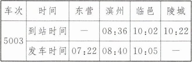 3. (2023·东营东营区期中)5003 次列车由东营开往陵城,东营到陵城铁路长 280 km,列车运行时刻表部分信息如下表,请回答下列问题: