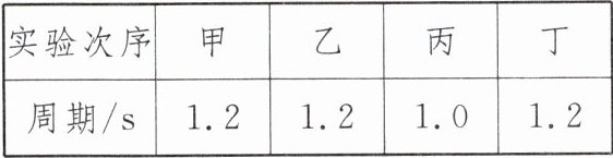 两次实验,可得出的初步结论:当摆长和摆球质量相同时,摆动的周期与摆幅无关。(3)利用丙和丁两次实验,可探究摆动周期和