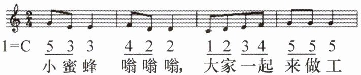 7. 如图是童谣“小蜜蜂”的一段歌词与乐谱,当小玲唱到“大家一起”这四个字时音调逐渐升高。关于这时小玲声音变化的描述正确的是(
