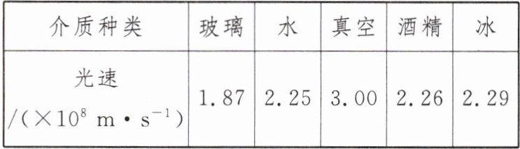 4. 小明想进一步探究光在固体、液体、气体中的传播速度的大小关系,通过网络查询到光在几种不同均匀介质中的传播速度如表所示: