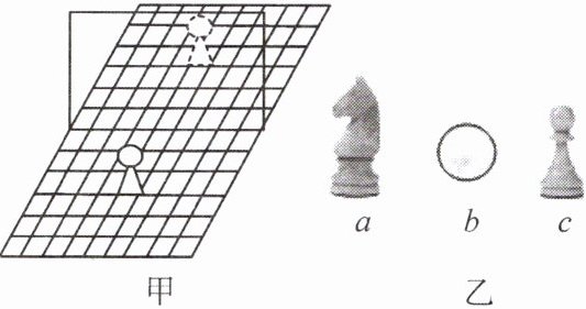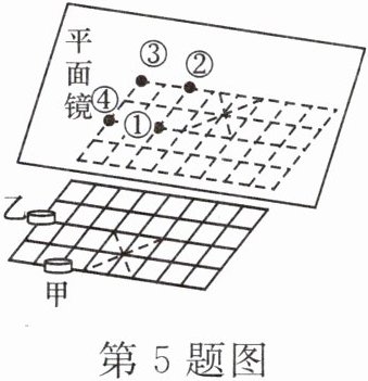 5. 如图所示,在中国象棋棋盘正中央竖立一块垂直于棋盘的平面镜,棋子“象”由甲移到乙,则平面镜中“象”的移动是(