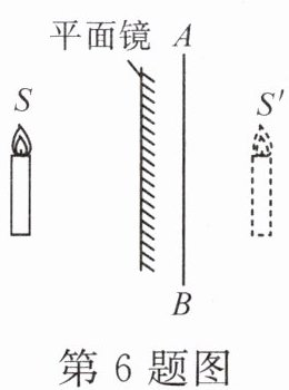 6. (2022·柳州)如图,光源 S 在平面镜中所成的像为 S′。若在镜后放置一块透明玻璃 AB,则像 S′将(