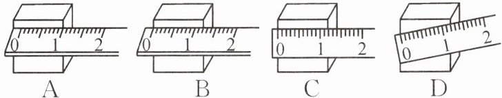 3. 下图是用木制的厚刻度尺测量铁块的长度,其中测量方法正确的是(