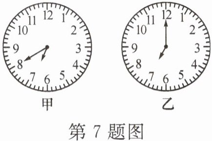 7. 王芳同学早上从家中出发去上学的时间如图甲所示,到校的时间如图乙所示,则她上学路上所用时间是