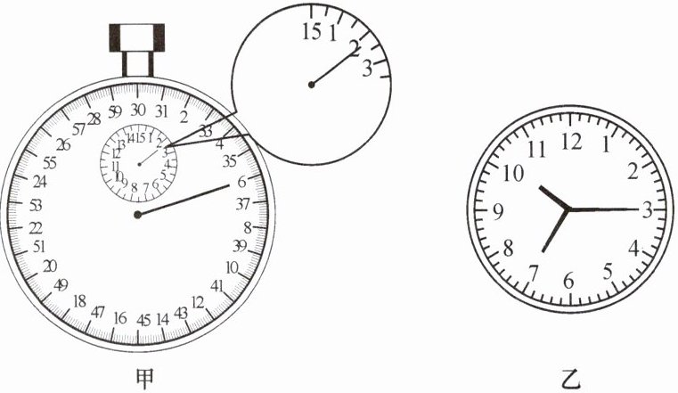 12. 如图所示是两种常用的测量时间的工具,其中甲表的大表盘的分度值是