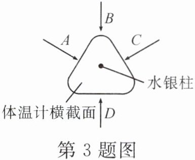 3. 常用液体体温计的刻度部分为三棱体,分别沿A、B、C、D方向观察读数(如图所示),其中沿