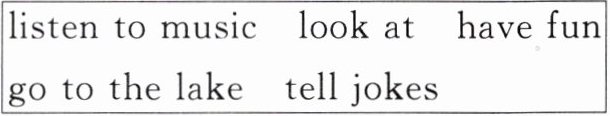 11.Look at 12.go to the lake 13.tells jokes 14.listen to music 15.have fun