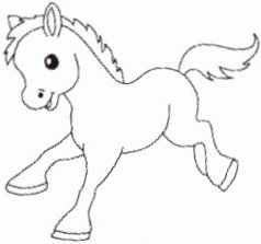 On the farm there is also ______ little horse. It never plays with other ______ and always walks around by itself. Mike likes it very much. And the horse is friendly(友好的)to Mike. When it ______ Mike on the farm, it runs up to him. Sometimes Mike ______ on the ground and reads a book and the little horse stands by him.
