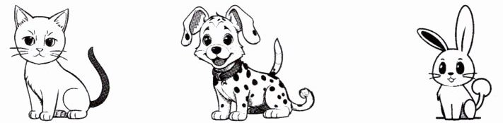 1. cat 2. dog 3. rabbit 4. flower 5. apple