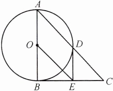 10. (泰安期中)如图,在△ABC中,∠ABC=90°,以AB的中点O为圆心,OA为半径的圆交AC于点D,E是BC的中点,连接DE,OE.