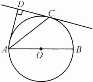 2. (滨州中考改编)如图,$ AB $ 为 $ \odot O $ 的直径,点 $ C $ 在 $ \odot O $ 上,$ AD \perp CD $ 于点 $ D $,且 $ AC $ 平分 $ \angle DAB $.求证:直线 $ DC $ 是 $ \odot O $ 的切线.