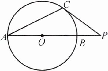 $\therefore \triangle OCP$为直角三角形,$\angle OCP = 90^{\circ}.\therefore OC \perp PC.\because C$是$\odot O$上一点,$\therefore PC$为$\odot O$的切线.