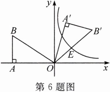 6. (攀枝花中考)如图,在 $ Rt \triangle ABO $ 中,$ AO = \sqrt{3} $,$ AB = 1 $,将 $ \triangle ABO $ 绕点 $ O $ 顺时针旋转 $ 105^{\circ} $ 至 $ \triangle A'B'O $ 的位置,$ E $ 是 $ OB' $ 的中点,且点 $ E $ 在反比例函数 $ y = \frac{k}{x} $ 的图象上,则 $ k $ 的值为