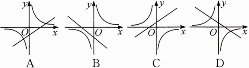 6. (东营校级月考)若 $ a b > 0 $,则一次函数 $ y = a x + 2 $ 与反比例函数 $ y = \frac { 2 b } { x } $ 在同一平面直角坐标系中的大致图象可能是( )