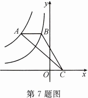 7. (东营垦利区期末)如图,点 $ A $,$ B $ 分别是反比例函数 $ y = - \frac { 12 } { x } ( x < 0 ) $ 和 $ y = - \frac { 4 } { x } ( x < 0 ) $ 图象上的点,且 $ A B // x $ 轴,点 $ C $ 在 $ x $ 轴上,则 $ \triangle A B C $ 的面积是(