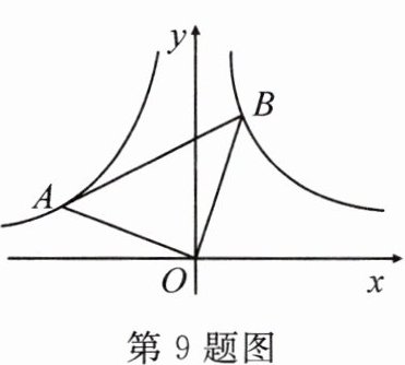 9. (东营中考)如图,$ \triangle O A B $ 是等腰直角三角形,直角顶点与坐标原点重合.若点 $ B $ 在反比例函数 $ y = \frac { 1 } { x } ( x > 0 ) $ 的图象上,则经过点 $ A $ 的函数图象表达式为