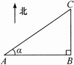 6. (南充中考)如图,小兵同学从A处出发向正东方向走x米到达B处,再向正北方向走到C处.已知∠BAC=α,则A,C两处相距(