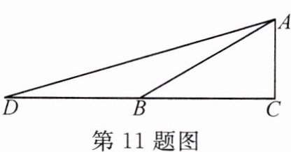 11. (滨州中考)如图,在 $ \triangle ABC $ 中,$ AC \perp BC $,$ \angle ABC = 30^{\circ} $,点 $ D $ 是 $ CB $ 延长线上的一点,且 $ BD = BA $,则 $ \tan \angle DAC $ 的值为(