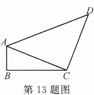 13. 如图,在四边形 $ ABCD $ 中,$ \angle B = 90^{\circ} $,$ AB = 2 $,$ CD = 8 $,$ AC \perp CD $.若 $ \sin \angle ACB = \frac{1}{3} $,则 $ \cos \angle ADC = $