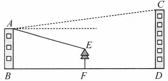 7.解:小明能运用以上数据,得到综合楼的高度.理由如下:作 EG ⊥ AB,垂足为 G,作 AH ⊥ CD,垂足为 H,由题意可知,EG = BF = 40 米,EF = BG = 12.88 米, ∠HAE = ∠AEG = 16°, ∠CAH = 9°。在 Rt△AEG 中,$tan ∠AEG = \frac{AG}{EG},$