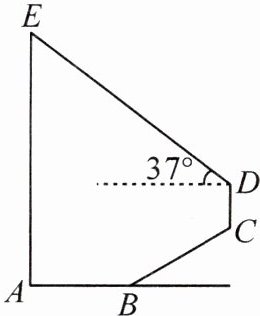 6. 如图,某数学活动小组为测量学校旗杆AE的高度,沿旗杆正前方$2\sqrt{3}$米的点B处出发,沿斜面坡度$i = 1:\sqrt{3}$的斜坡BC前进4米到达点C,在点C处安置测角仪,测得旗杆顶部E的仰角为$37^{\circ}$,量得仪器的高CD为$1.5$米。已知点A,B,C,D,E在同一平面内,$AE \perp AB$,$AE // CD$,则旗杆AE的高度是