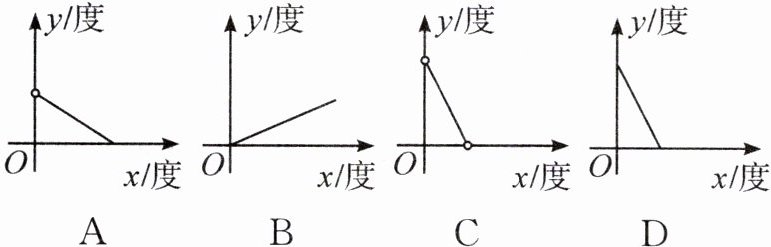 8. 下列图象中,能反映等腰三角形顶角y(度)与底角x(度)之间的函数关系的是(