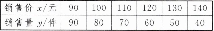 9. (泰安泰山区期末)在某一阶段,某商品的销售量y与销售价x之间的关系如下表: