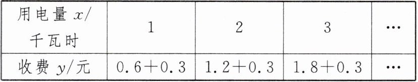 3. 某居民区用电量x(千瓦时)与收费y(元)的函数关系如下表,其中电表本身的耗电费用为0.3元.
